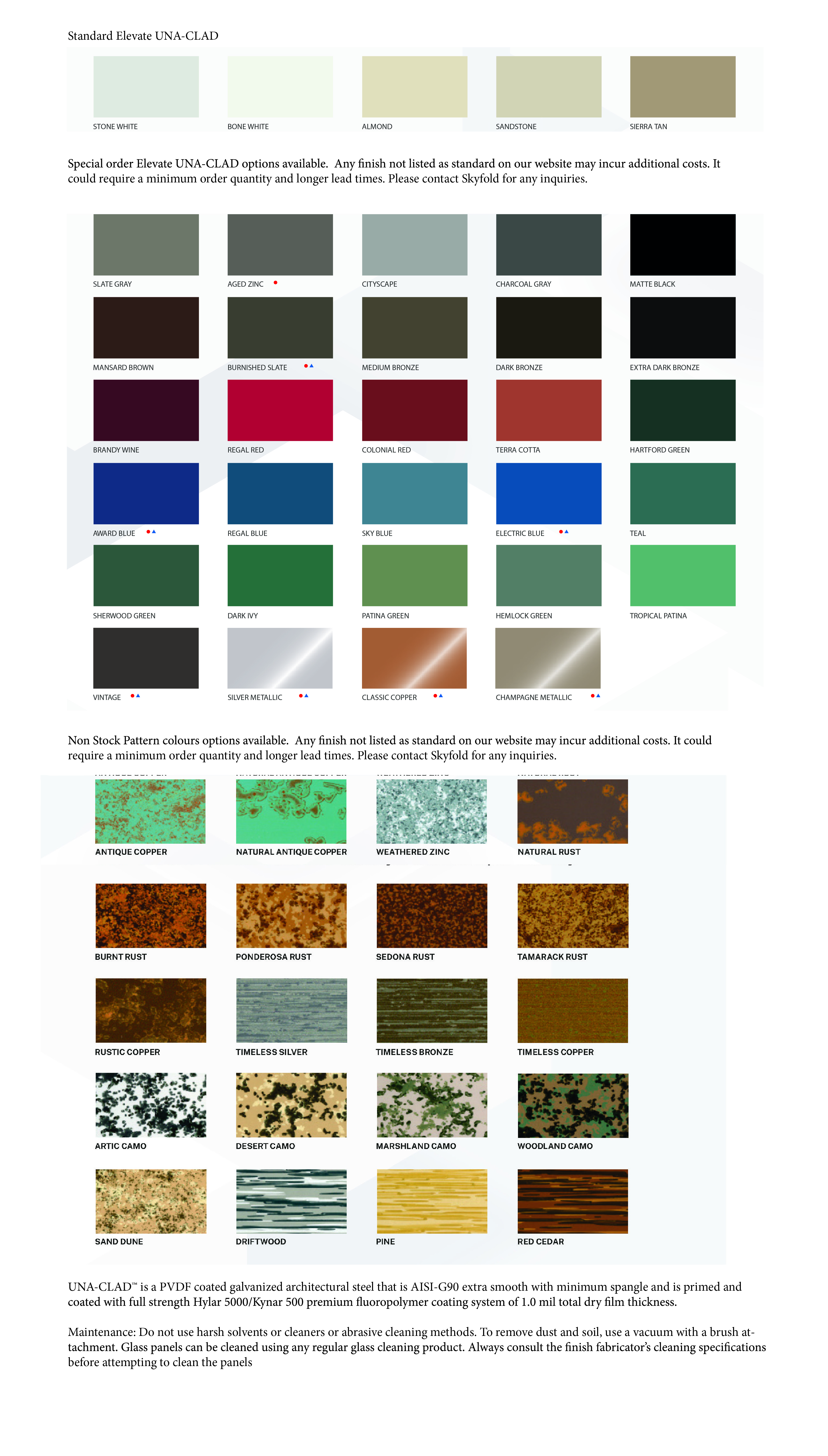UNA-CLAD™ is a PVDF coated galvanized architectural steel that is AISI-G90 extra smooth with minimum spangle and is primed and coated with full strength Hylar 5000/Kynar 500 premium fluoropolymer coating system of 1.0 mil total dry film thickness.
